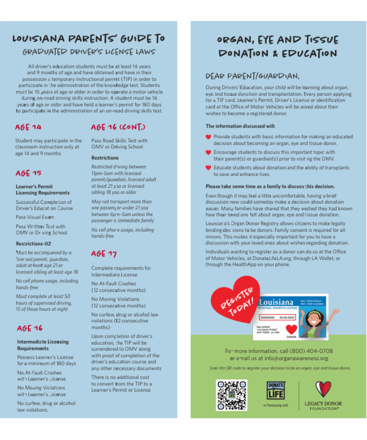 This guide offers essential information on age-related driving restrictions for minors, helping parents navigate their child’s path to becoming a licensed driver. It also highlights the importance of having a family conversation about organ, eye & tissue donation so your child can make an informed decision.